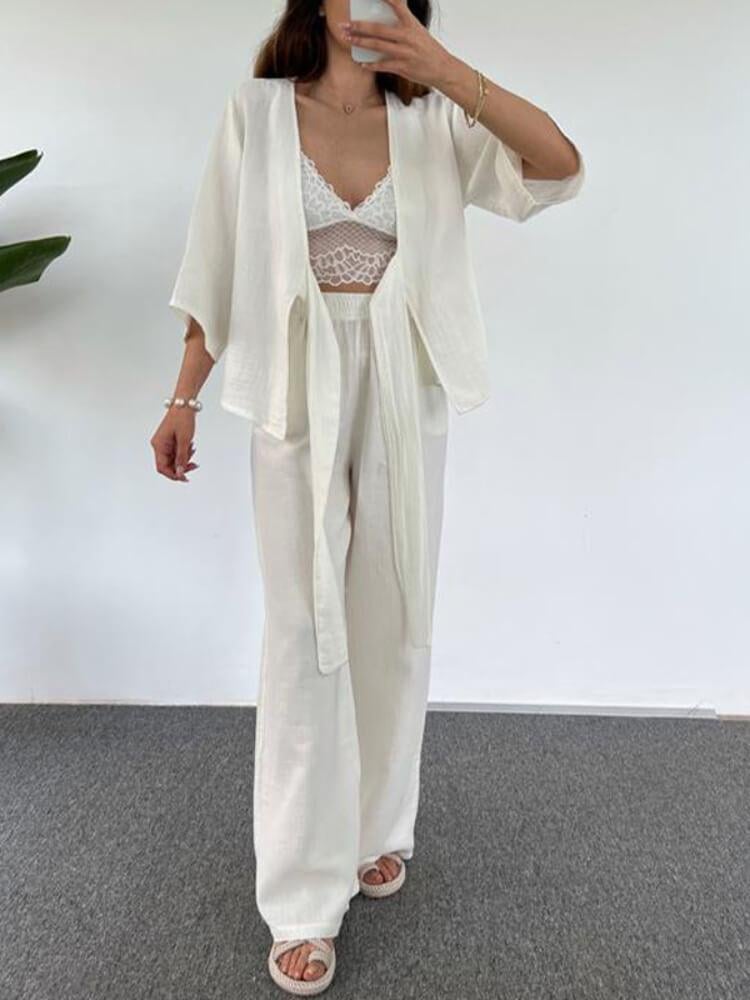 Prosty, sznurowany kardigan, dwuczęściowy zestaw spodni