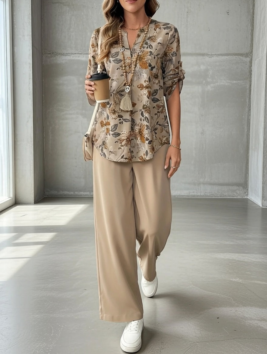 Swobodne wyrafinowanie spotyka się z rozkwitającym ciepłem w zestawie Elena Signature Set™, nowoczesnym dwuczęściowym zestawie zaprojektowanym z myślą o swobodzie i podwyższonym komforcie. Zestaw ten, składający się z bluzki z miękkim nadrukiem i jesiennymi kwiatami oraz dopasowanych spodni z szerokimi nogawkami, łączy w sobie swobodny urok z wyrafinowaną swobodą — idealny dla kobiet, które chcą dopracowanego stylu bez wysiłku. Od wyjść na kawę po relaksujące wyjścia – Elena zapewnia dyskretny luksus, po który będziesz sięgać wielokrotnie.