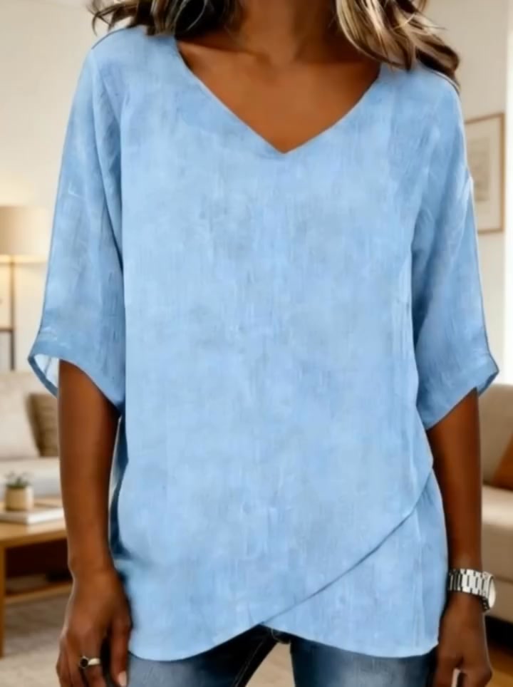 Zawartość zestawu: 1 × damska bluzka w jednolitym kolorze z dekoltem w serek
